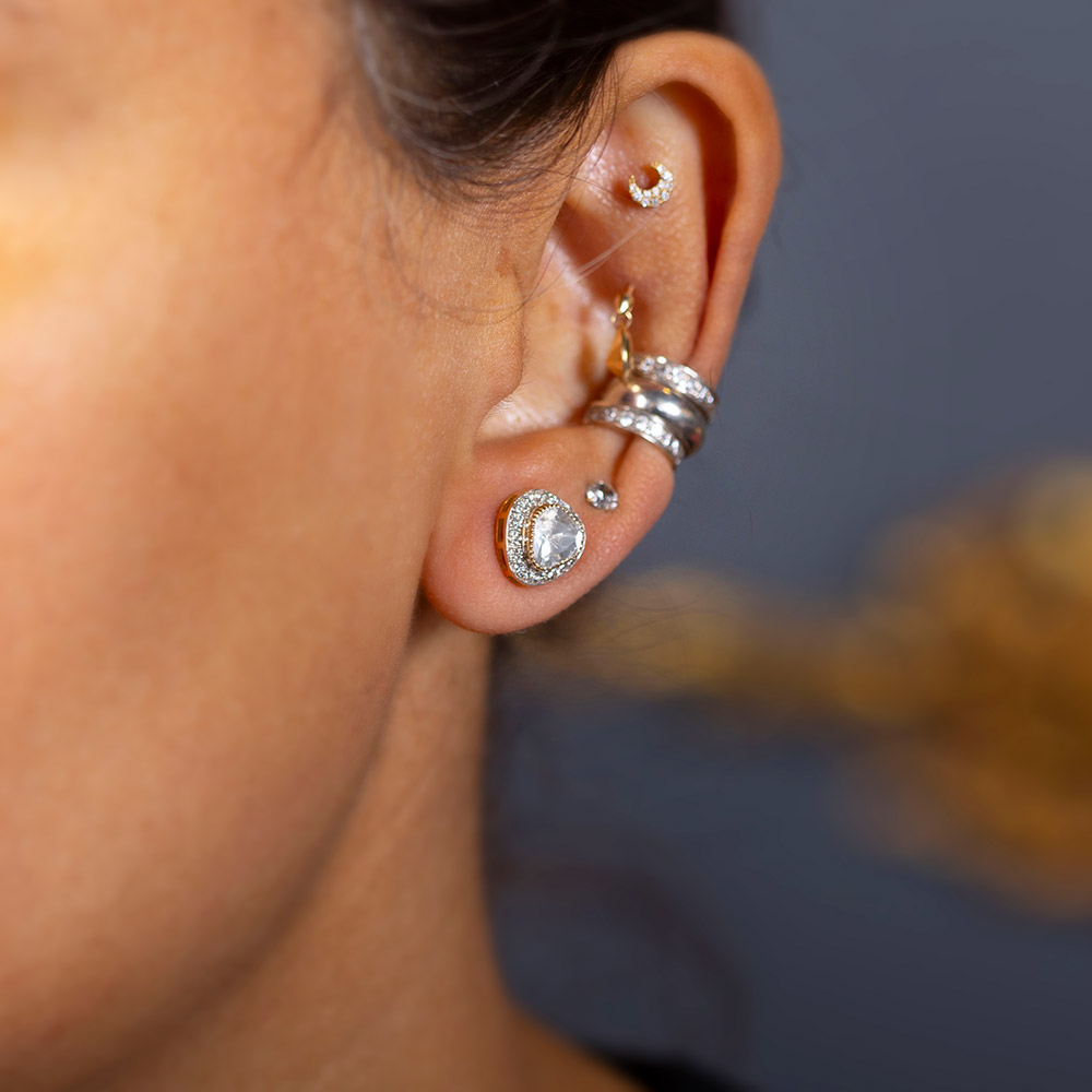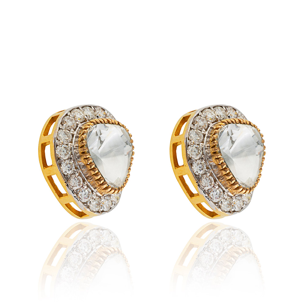 Set on 18kt gold with consciously sourced round cut brilliant diamonds and high uncut natural diamonds (polki diamonds)