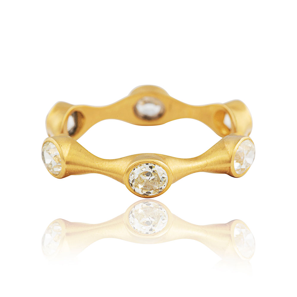 Set with 1.53 carat of natural Old Mine Cut Diamonds (VS-SI clarity; L-M colour) on 18kt gold. A classic piece, a re-take on an eternity ring.