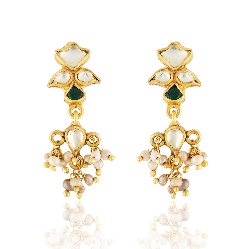 Antique Mughal Inspired Crystal & Pearl Drop Earrings