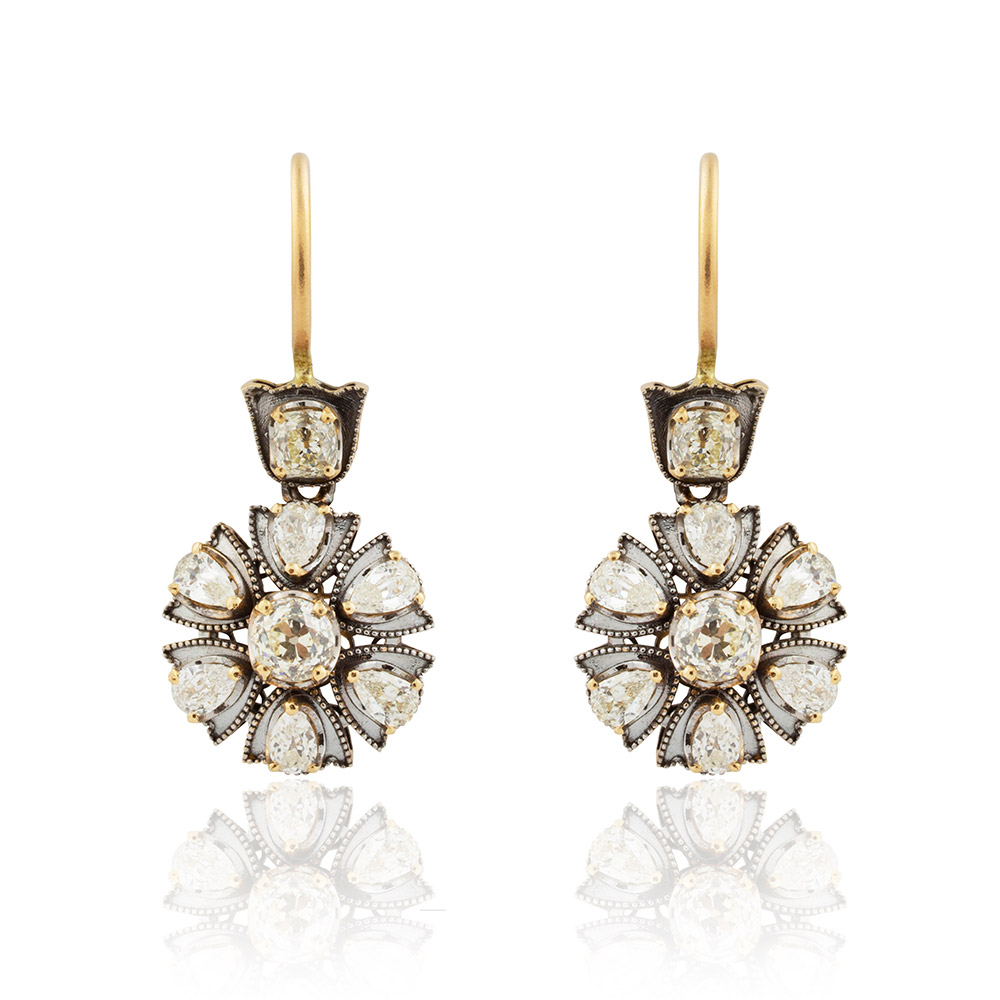 A classic heirloom earring set with 2.26 carat of natural old mine cut diamonds (L-M colour; VS clarity) on 18kt gold. A forever piece to be passed down generations.