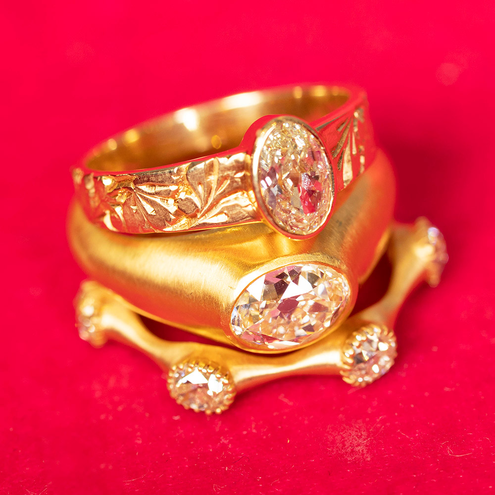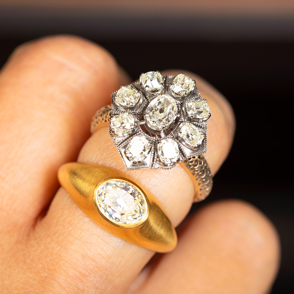 A piece we are so proud of. A classic heirloom with our own take, set with 1.55 carat of natural old mine cut diamonds on 18kt gold. A forever piece to be passed down generations.