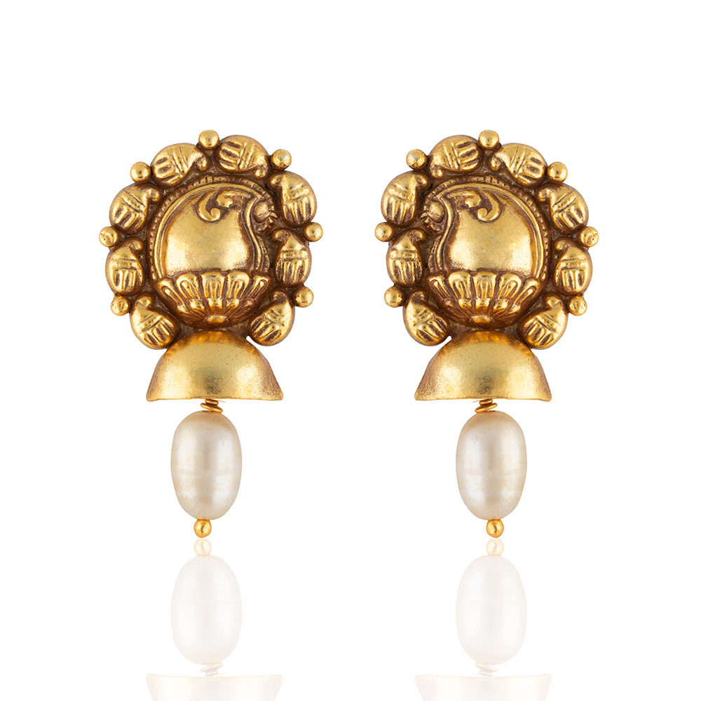 A very pretty, simple stud earrings with fresh water pearls, with paisley motif detailing.