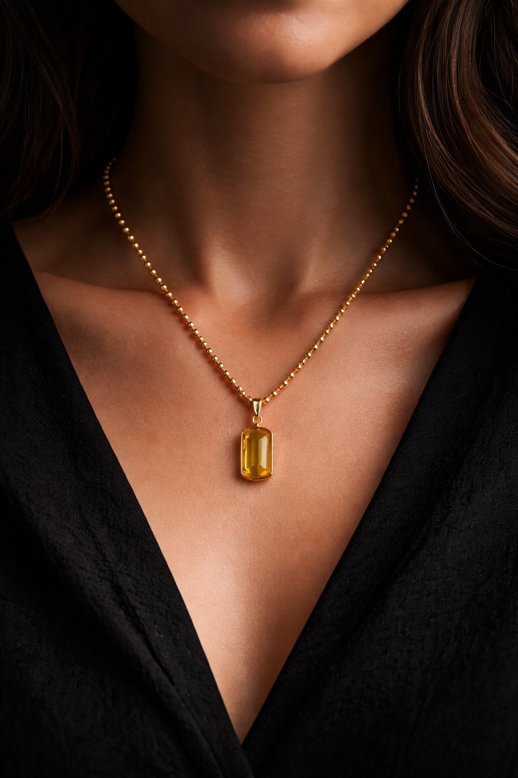 A simple pendant necklace, featuring 26.78 carat of high faceted quartz.