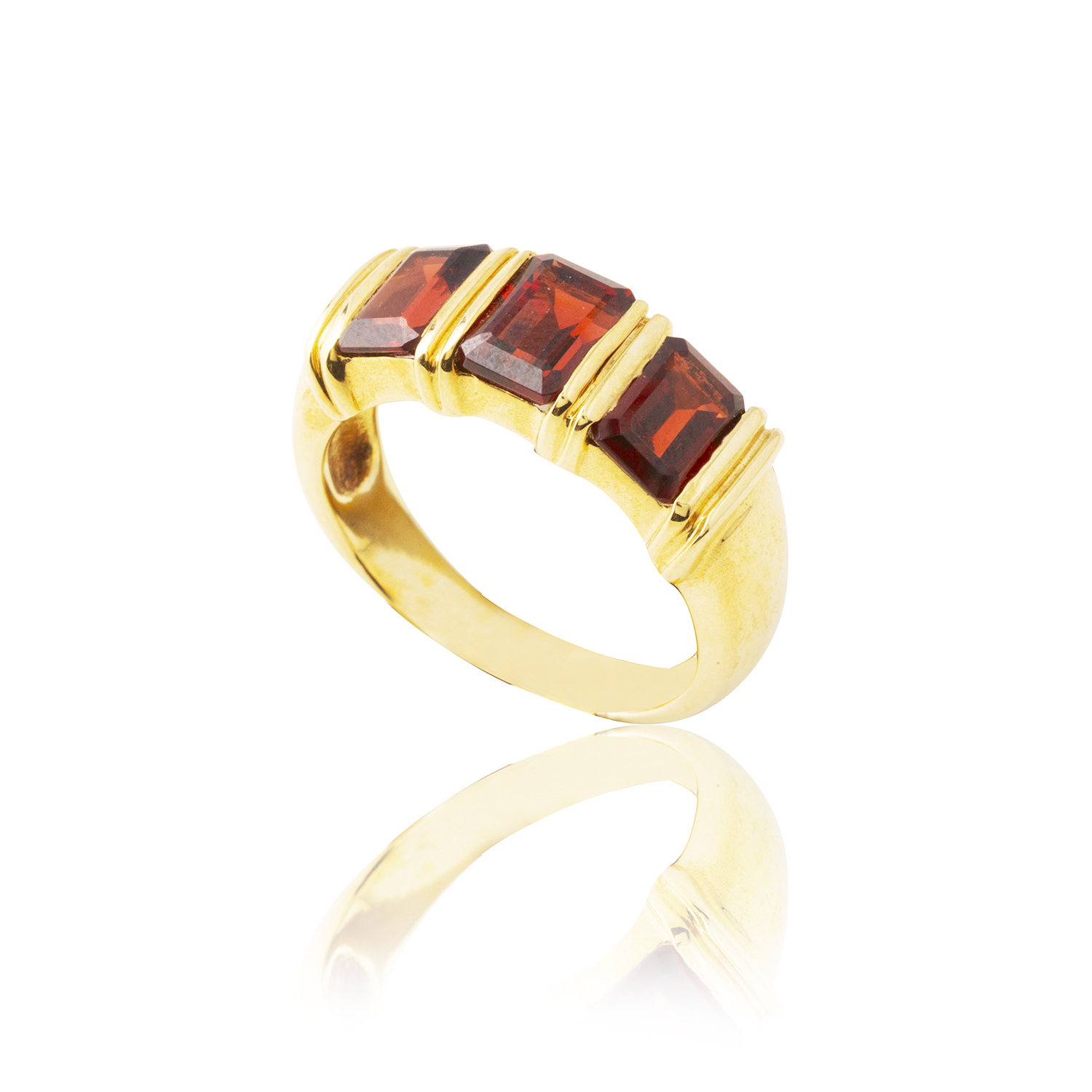 A pretty, one off a kind, vintage 14kt gold ring set with garnets & much old school charm.
